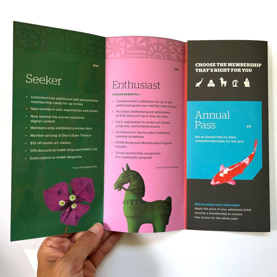 Five membership levels visually respresent museum artworks, flora, and fauna in a flexible system that feels playful and educational.